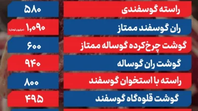 قیمت گوشت قرمز امروز ؛ مهر اعلام شد طبق اخبار تجاری ، قیمت امروز برای گوشت قرمز ؛ مهر ۲۰۱۴…