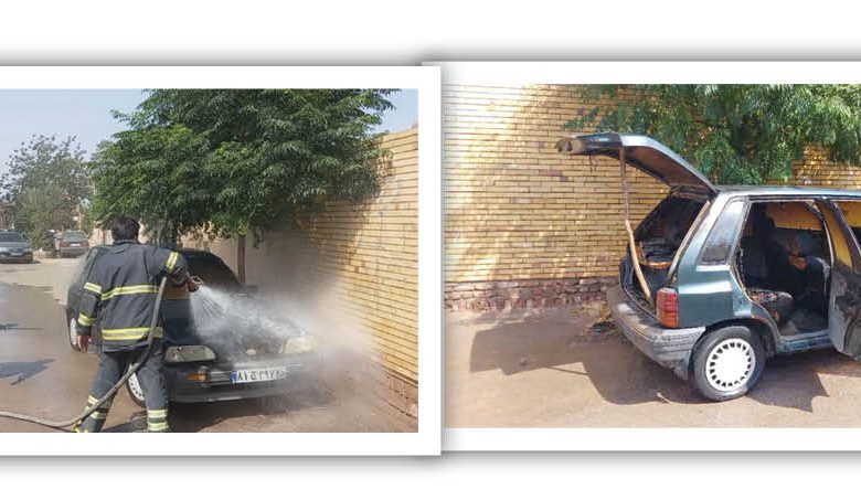 آتش گرفتن پراید به دلیل انفجار باتری موبایل