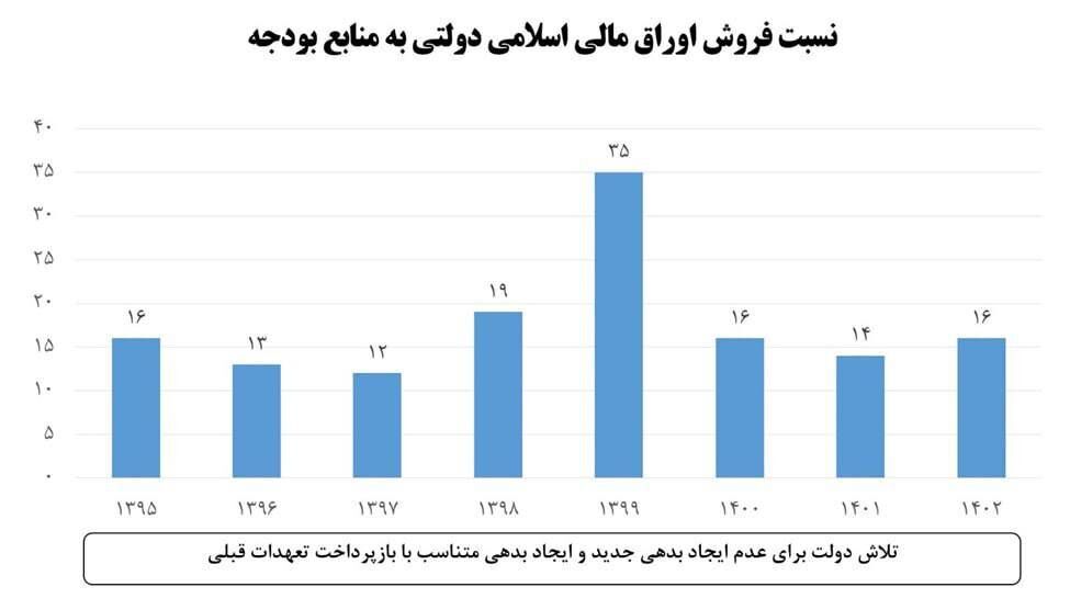 یکی از روش های تامین مالی ناپایدار مورد استفاده دولت ها، انتشار اوراق قرضه مالی (قرض گرفتن) است. اگرچه اصل بدهی عمومی کارکرد اقتصادی کلان مفیدی دارد، اما محدودیت ها و مقررات مالی باید در این زمینه در نظر گرفته شود. بررسی عملکرد تامین مالی بودجه توسط محل انتشار اوراق مالی اسلامی دولت نشان میدهد که نسبت فروش اوراق به کل منابع بودجه عمومی در سالهای پایانی دولت دوازدهم از ۱۲ درصد در سال ۱۳۹۶ به ۳۵ درصد در سال ۱۳۹۸ افزایش یافته است. این امر نشان دهنده سهل انگاری در حفظ ثبات بدهی عمومی است و البته در سال های بعد فشار قابل توجهی را بر سیستم بودجه ای دولت برای بازپرداخت سرمایه و زیرمجموعه های این اوراق وارد می کند. در سالهای سلطنت سیزدهم (۱۴۰۰-۱۴۰۲)، با توجه به تمرکز دولت بر تأمین مالی از منابع درآمدی پایدار و نیاز به استفاده از اوراق قرضه مالی، نسبت استقراض مالی از منابع بودجهای از ۳۵ درصد در سال ۲۰۱۹ افزایش یافت. در دوره دولت سیزدهم به طور متوسط حدود ۱۵ درصد افزایش یافت.