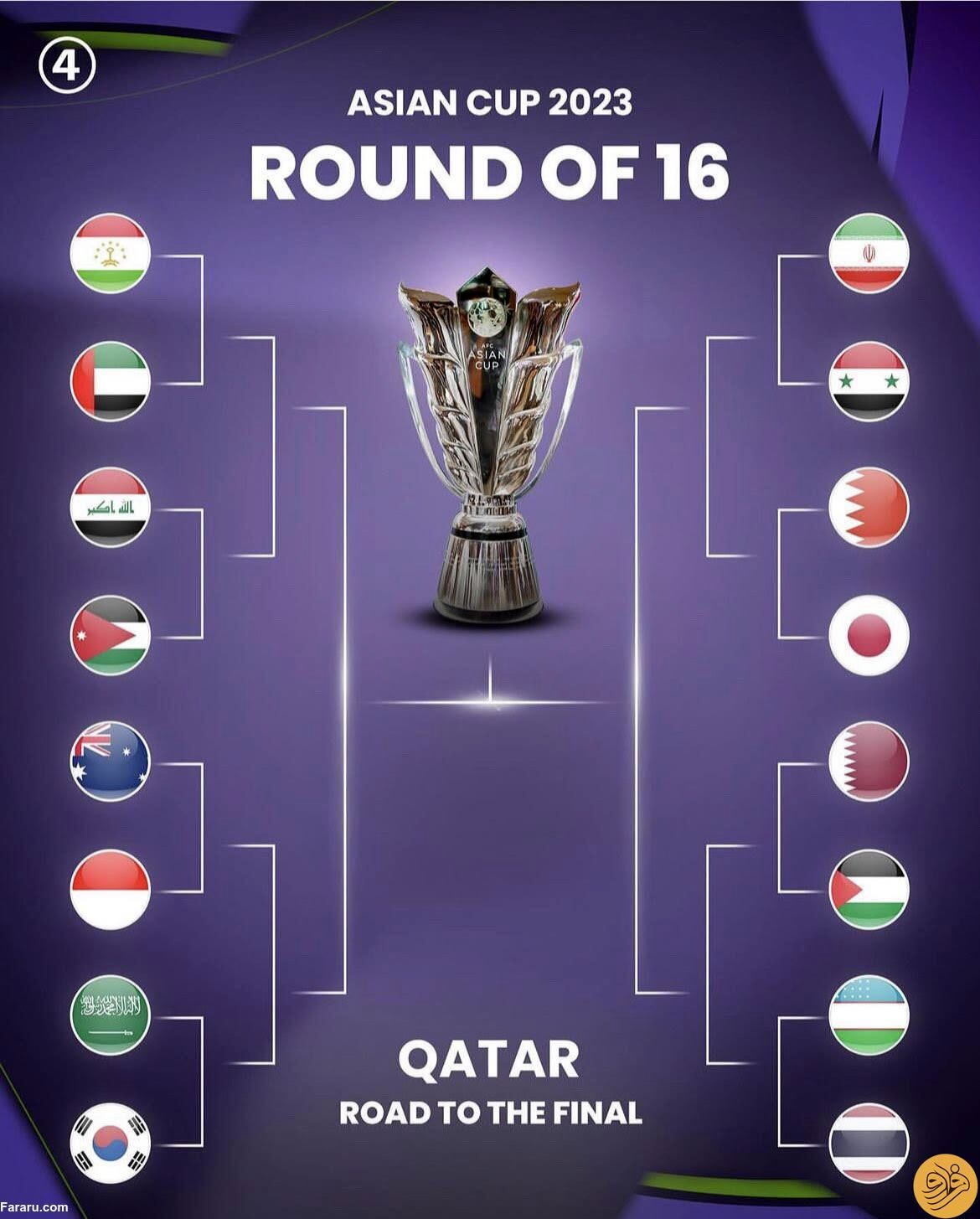 برنامه کامل بازیهای جام ملتهای آسیا در مرحله یک هشتم نهایی