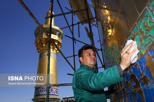 تصاویر: آیین شستشو گنبد حرم مطهر رضوی