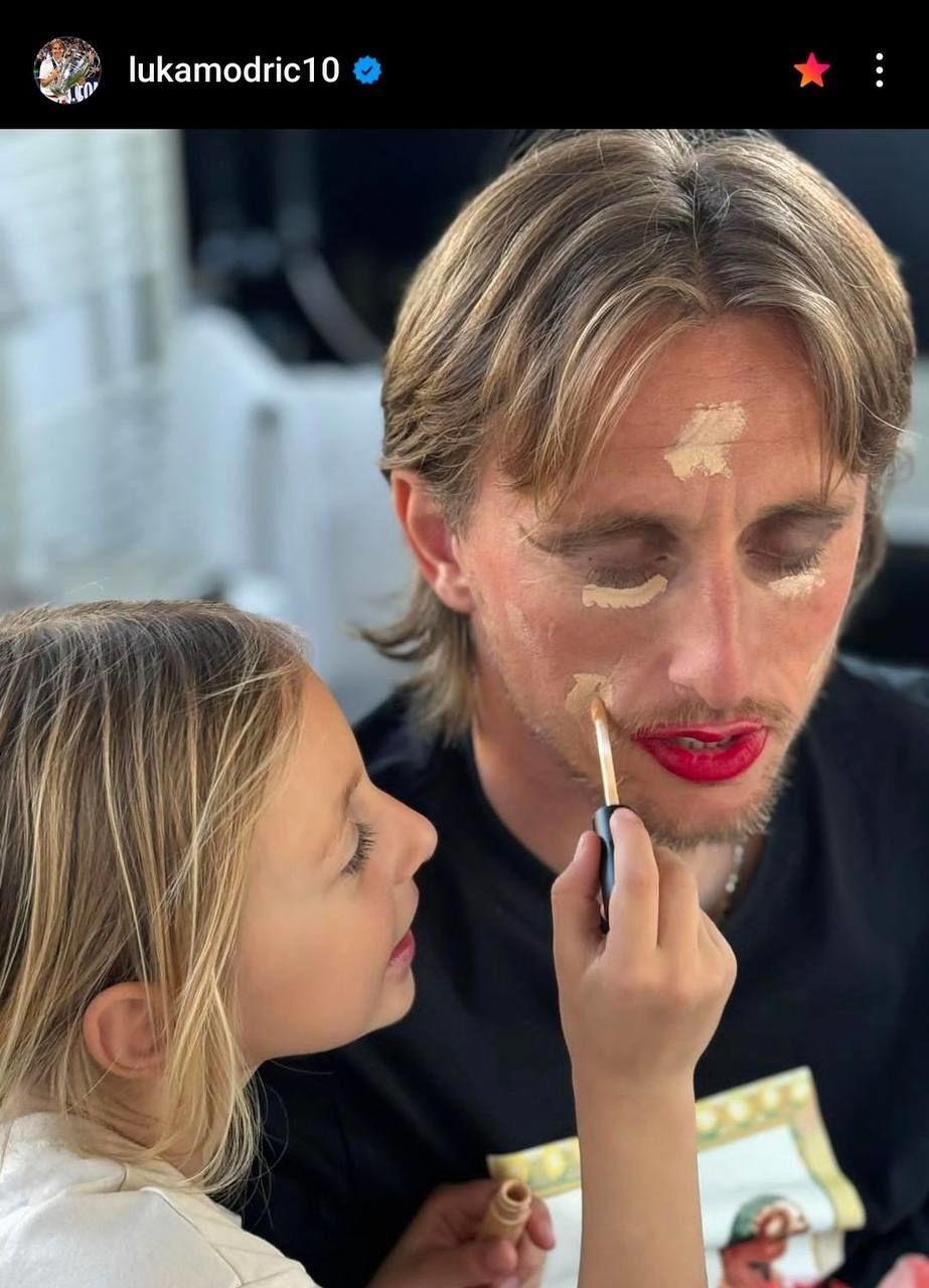 عکس مودریچ در صفحه شخصی اینستاگرامش در حالی که دخترش برای او رژ لب زده و صورتش را کرم پودر کرده سوژه رسانه های ورزشی شده است.