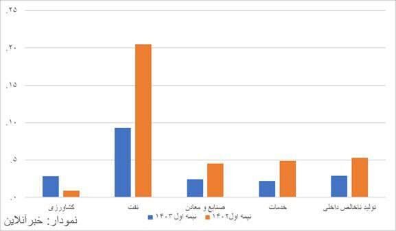 بررسی های بانک مرکزی نشان می دهد رشد اقتصادی بدون نفت ۲.۴ درصد بوده است. رشد بخش صنعت نیز کمتر از یک درصد است.