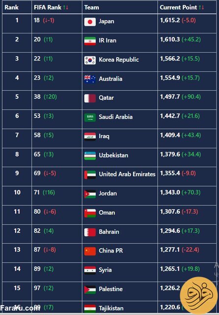 در زیر رده بندی آسیایی ها در رده بندی فیفا را مشاهده می کنید: