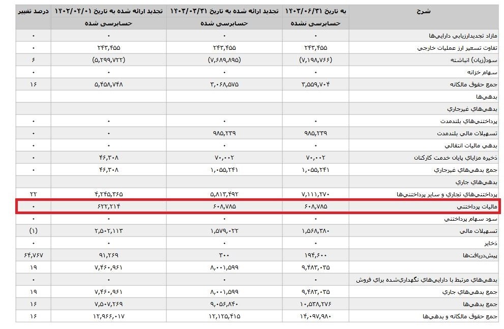 طبق اسناد حسابرسی شده منتهی به ۳۱ خرداد باشگاه پرسپولیس در سال ۱۴۰۲ حدود ۶۰ میلیارد تومان بدهی مالیاتی در اسناد مالی خود دارد و این در حالی است که با احتساب مالیات های پرداختی باید بدهی مالیاتی ۲۷۷ میلیارد تومانی را در صورت مالی خود منعکس کند. زمانی که سازمان مالیاتی پس از بررسی های خود به ایرادات باشگاه پرسپولیس رسیدگی کند این رقم را می توان به ۶۰ میلیارد تومان کاهش داد. این موارد در گزارش حسابرس نیز ذکر شده است.