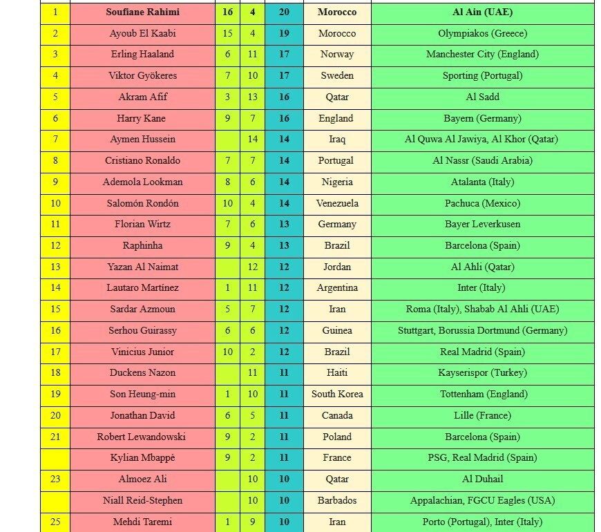 ارلینگ هالند، هری کین، کریستیانو رونالدو و وینیسیوس جونیور به ترتیب در رده های سوم، ششم، هشتم و هفدهم بهترین گلزنان فوتبال جهان در رقابت های بین المللی قرار دارند.