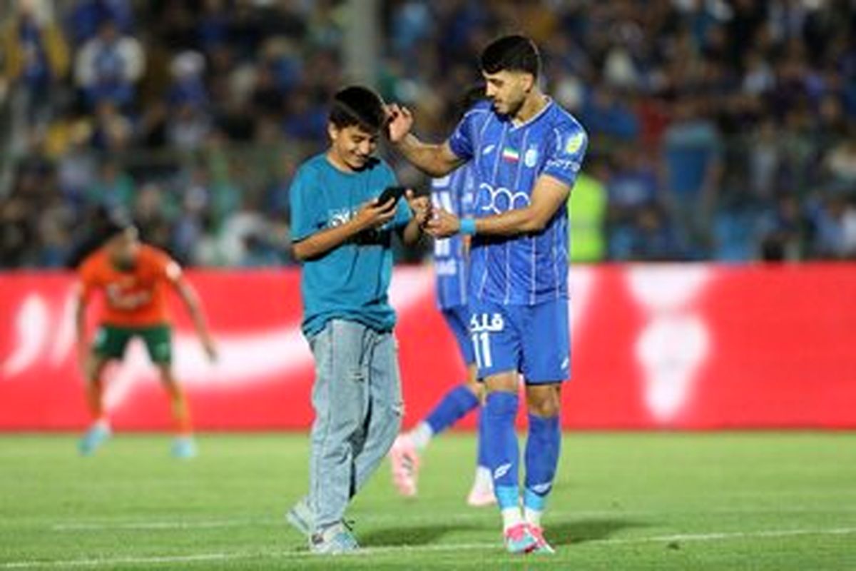 سلفی با ستاره استقلال وسط بازی/ عکس