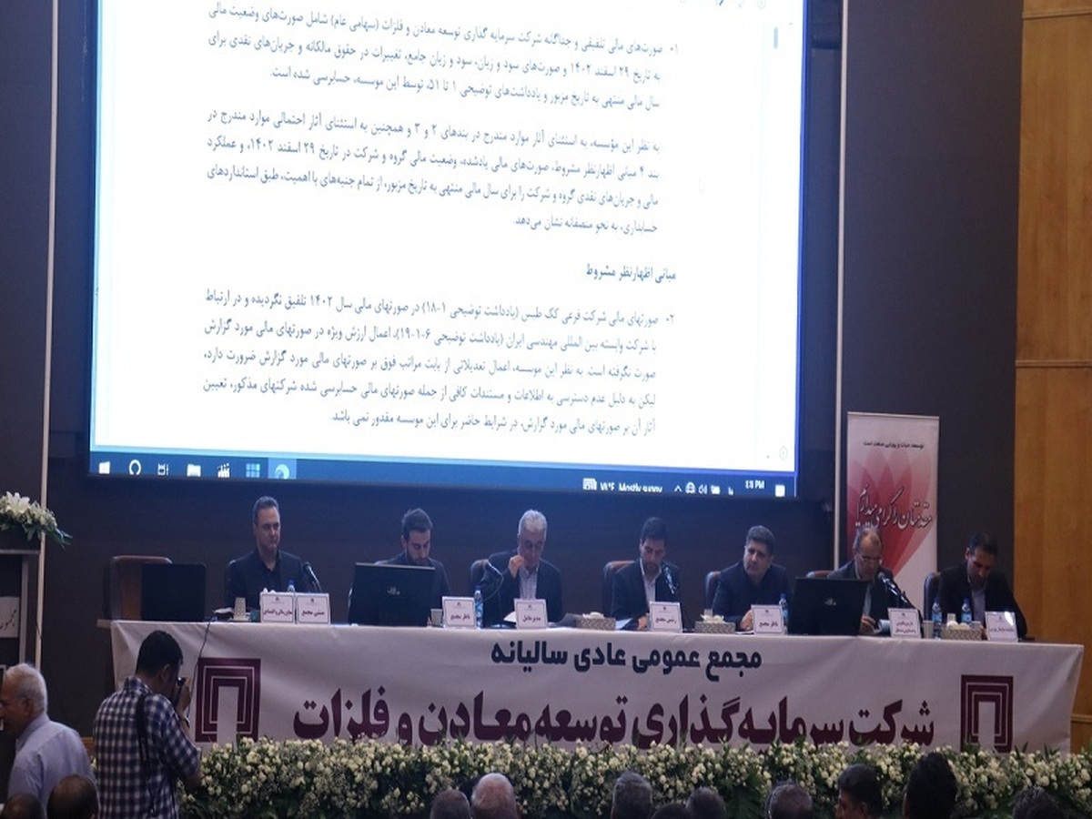 مجمع عمومی عادی سالیانه شرکت سرمایه گذاری توسعه معادن و فلزات روز سه شنبه مورخ ۲۹ فروردین ماه ۱۴۰۳ با حضور صاحبان سهام تشکیل شد.
