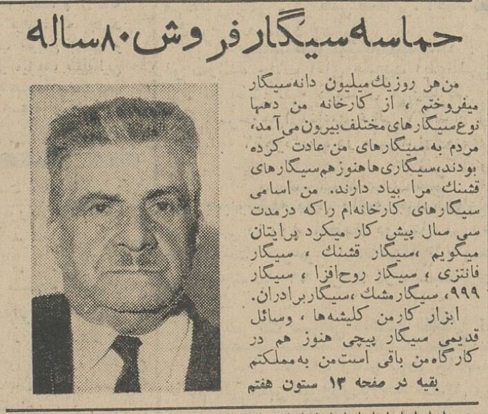 ۹۳ سال پیش در زمان رضاشاه (۱۳۱۰) تولید تنباکو از بخش دولتی گرفته شد و شرکت ملی دخانیات ایران تأسیس شد و منحصراً سیگار تولید می کرد. نمایندگان بخش خصوصی در مقابل خروج از سیگارپیچی به عنوان تنها عامل عرضه سیگار ایرانی در بازار شناخته و شناخته شدند. روزنامه اطلاعات ۲۱ مرداد سال ۱۳۴۳ نامه ای از یک سیگارفروش ۸۰ ساله به نام تقی فرج زاده منتشر کرد که در آن از مدیران کشور خواسته بود انحصار فروش سیگار را از بازماندگان و وارثان سیگارسازان ایرانی در دوره رضاشاه حذف نکنند. نامه را بخوانید و عکسی که کمتر دیده شده از سوزاندن محمدرضا پهلوی را ببینید.