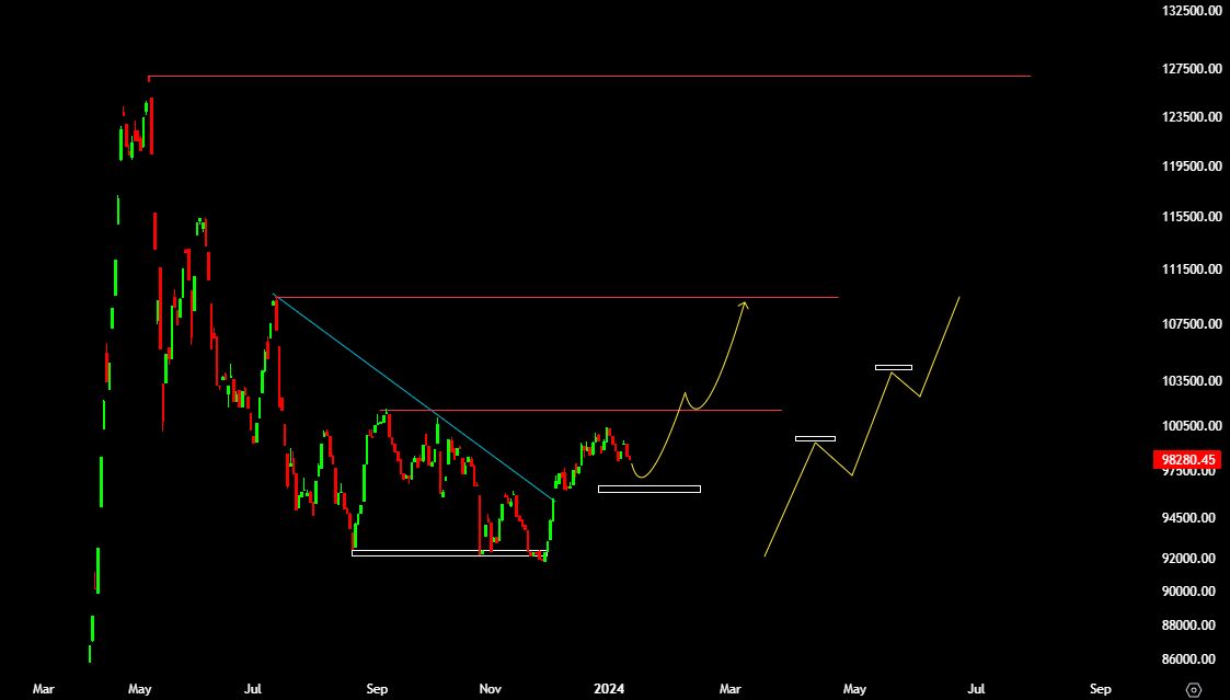 بر اساس تحلیلی که هفته گذشته منتشر شد، شاخص در کوتاه مدت روند نزولی خود را شکست و نزدیک به مقاومت ۱۰۰ هزار واحدی اصلاح سبک خود را آغاز کرد. اکنون انتظار می رود که به پشتیبانی ۹۶.۸۰۰ پاسخ مثبت داده و به مسیر برگردد. به افزایش ادامه دهد. ما در حال حاضر در میانه موج دوم اصلاحات هستیم و پس از اتمام موج می توانیم تشکیل تاخیرهای صعودی بعدی را مشاهده کنیم.