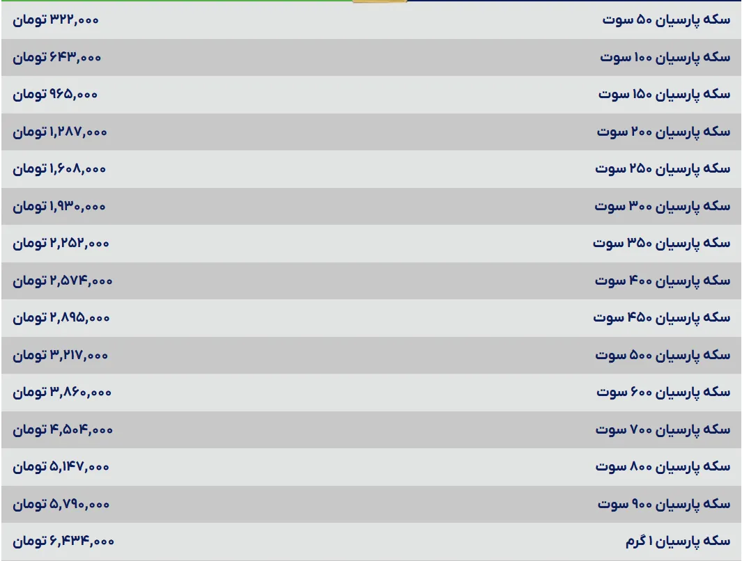 قیمت سکه پارسیان امروز دوشنبه ۱۲ خرداد ۱۴۰۴ – افق میهن