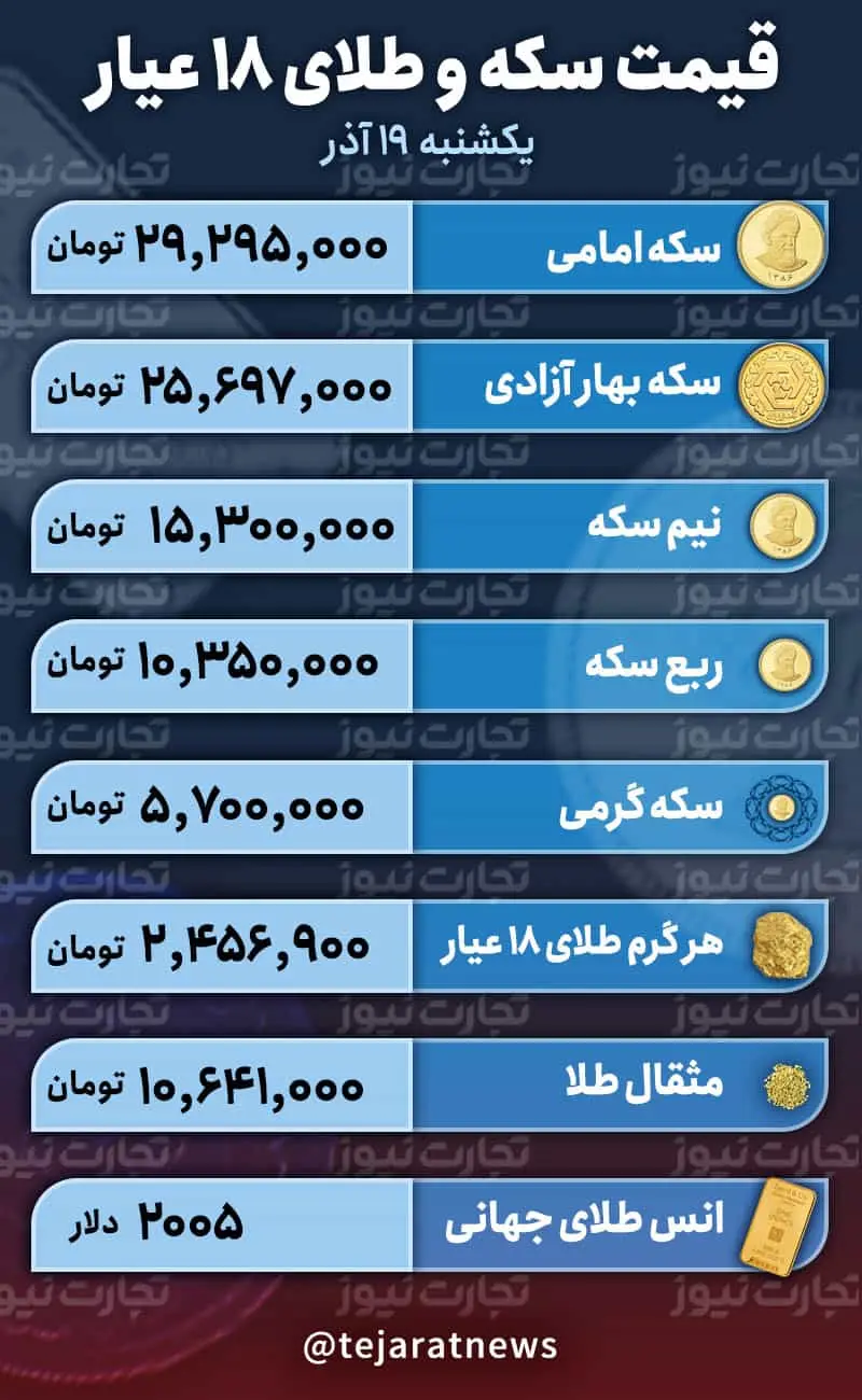 قیمت طلا و سکه امروز 19 آذر ۱۴۰۲ / راه سکه بهار آزادی جدا شد