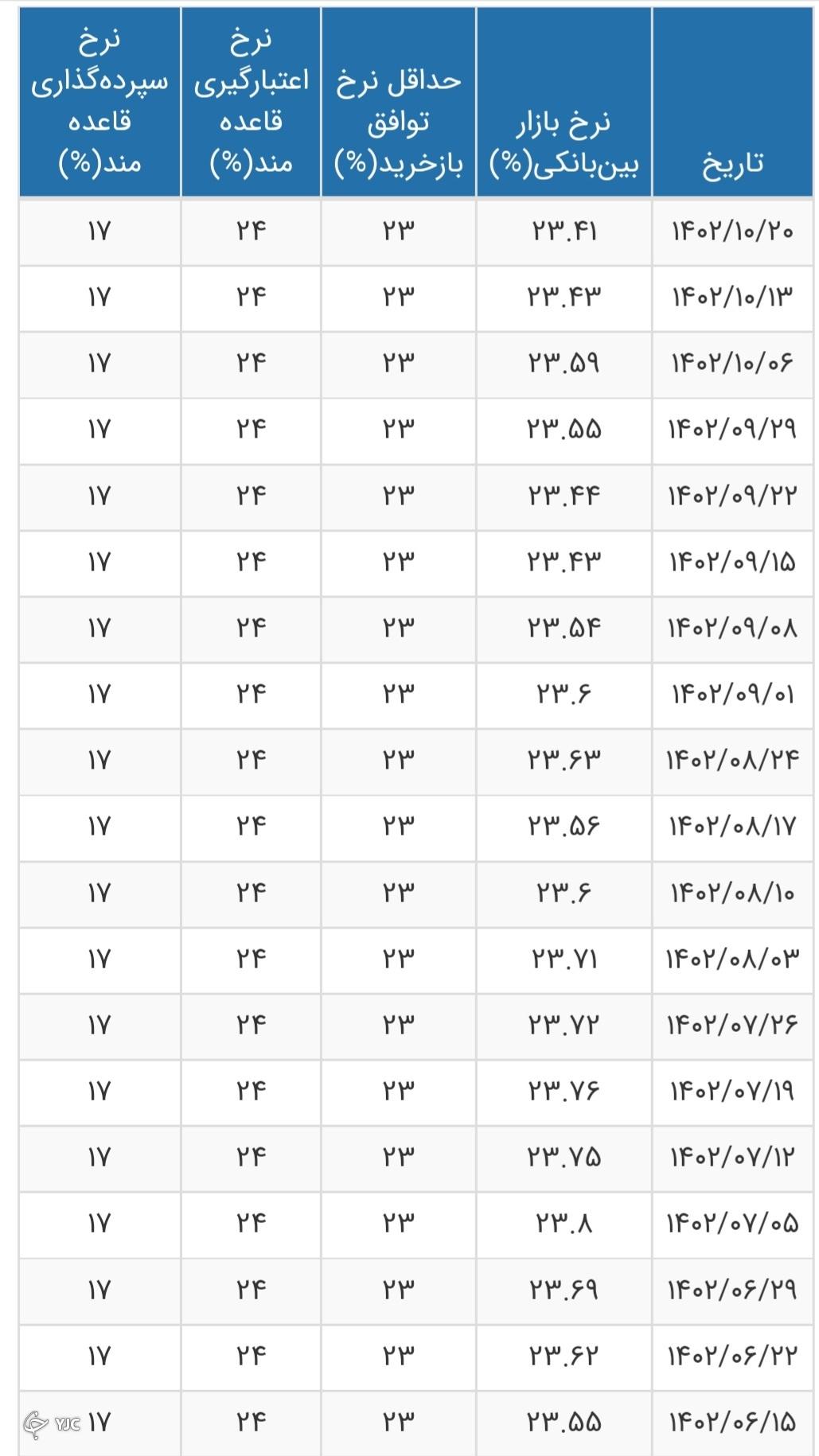 نرخ بهره بین بانکی به ۲۳.۴۱ درصد رسید