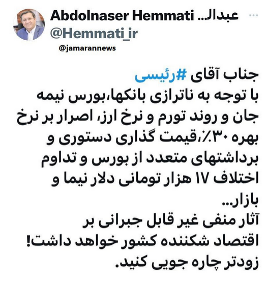 جناب همتی عزیز باور کنید وقتی با رزومه مدیرکل سیاسی صداوسیما به رئیس بانک مرکزی رسیدید از قدرت راهکارهای بانک مرکزی رها شدیم پس اینقدر این دوستان را اذیت نکنید.