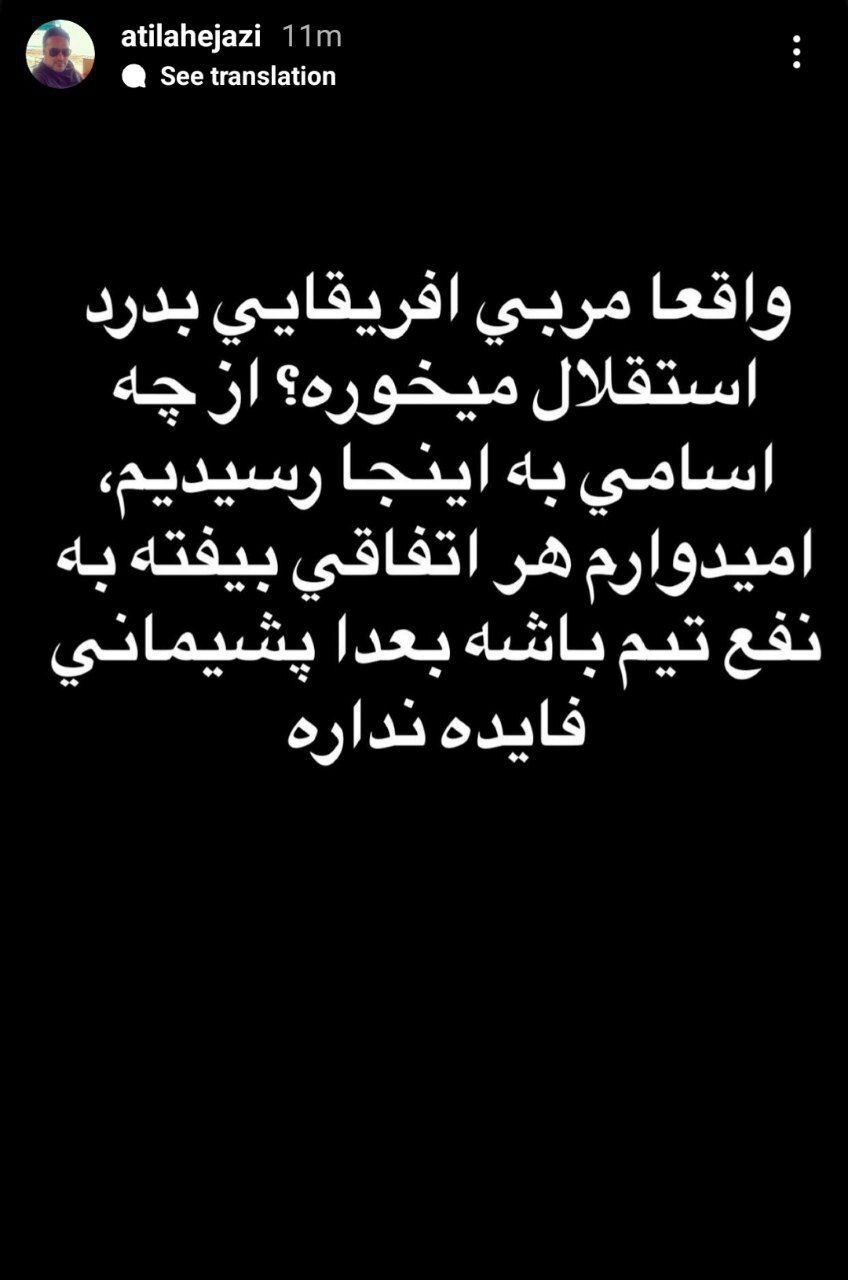 واکنش تند آتیلا حجازی به سرمربی آفریقایی استقلال!