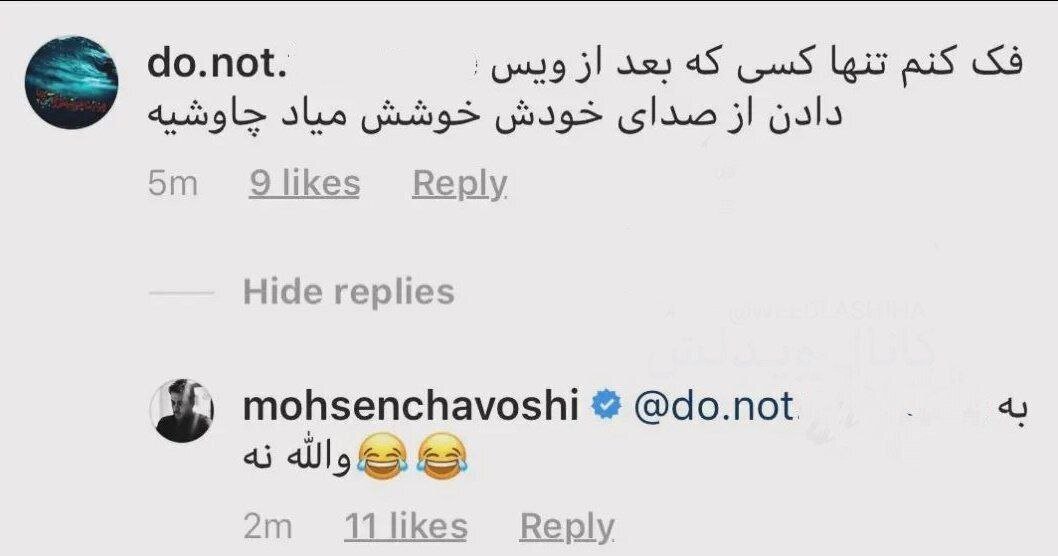 محسن چاوشی به کامنت یکی از هوادارانش در اینستاگرام واکنش نشان داد. این واکنش توجه کاربران را به خود جلب کرده و در شبکه های مجازی در حال گسترش است.