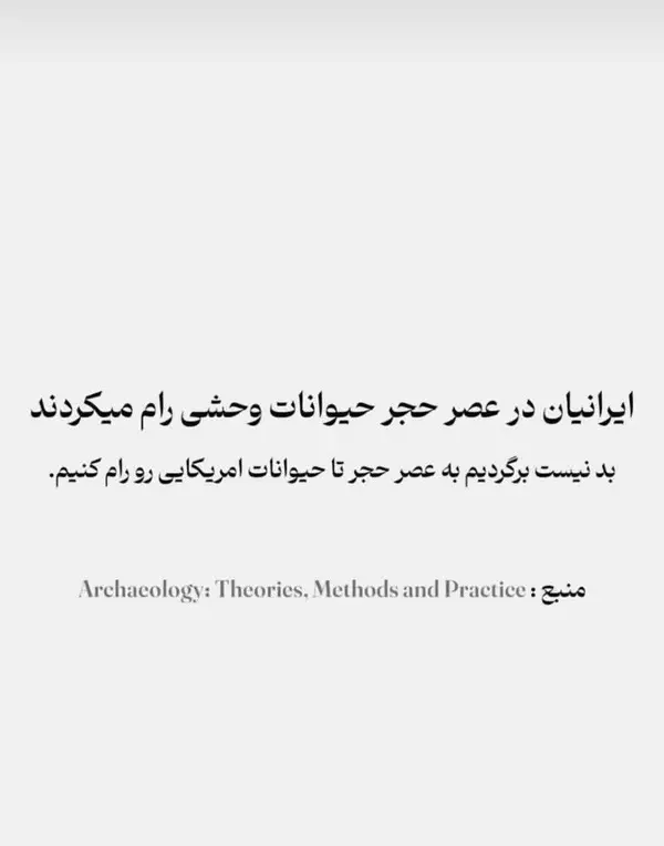 ایرانیان در عصر حجر حیوانات وحشی را اهلی می کردند. بد نیست برای اهلی کردن حیوانات آمریکایی به عصر حجر برگردیم.» این مطلب را محمدرضا سنگ سفیدی، بازیکن تیم ملی فوتسال ایران در واکنش به تهدید ترامپ نوشته است.