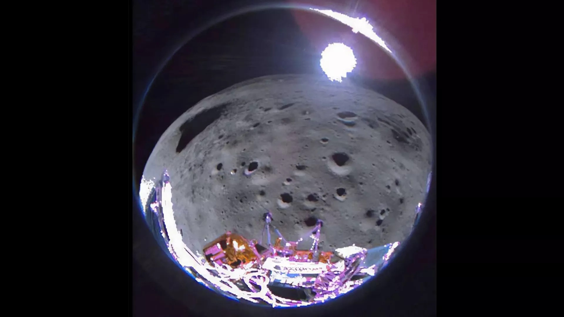 یک فرودگر آمریکایی که هفته گذشته هنگام فرود بر سطح ماه واژگون شد، اکنون اولین تصاویر خود را ارسال کرده است.