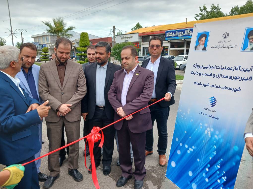 عملیات اجرایی پروژه فیبر نوری منازل و مشاغل شهرستان خمام با حضور امیر لاجوردی معاون وزیر ارتباطات و فناوری اطلاعات و رئیس سازمان تنظیم مقررات و ارتباطات رادیویی آغاز شد.