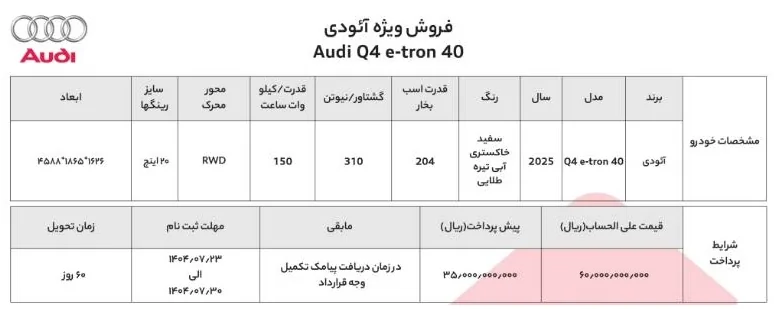 خط مشی فروش Audi Q4 امروز ، ۲۳ اکتبر در آژانس های فروش به شرح زیر فعال می شود.