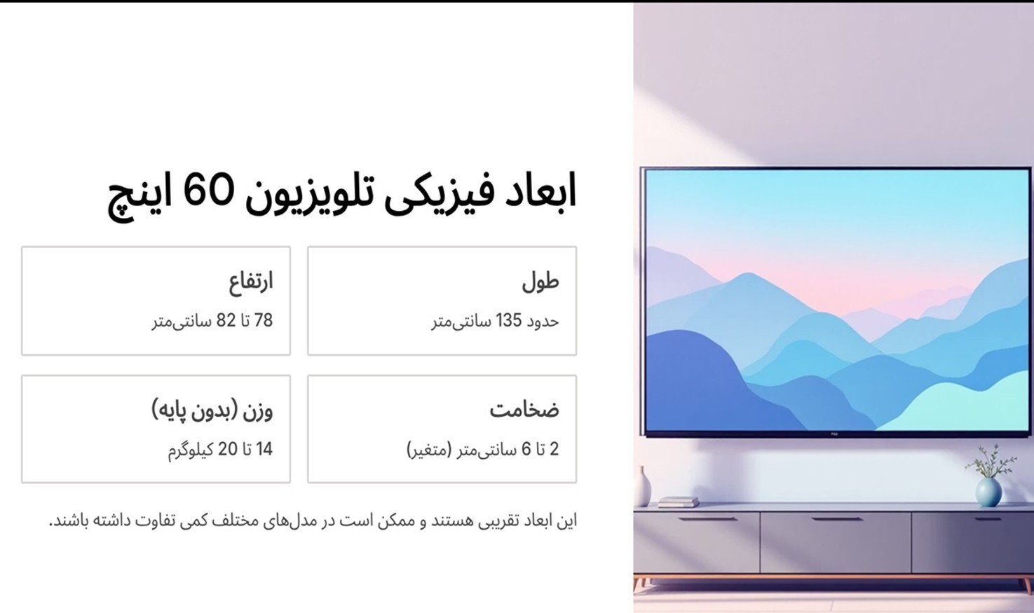 ابعاد تلویزیون 60 اینچ | سایت افق میهن
