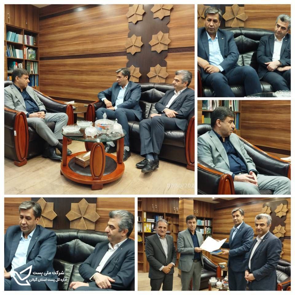 احمد چگنی ، مدیر کل مرکز برنامه ریزی استراتژیک شرکت ملی پست ، محمد حسین هوسانگی ، مدیر کل Gilan Post ، با محمد رضا رستامی ، رئیس سازمان مدیریت و برنامه ریزی گیلان دیدار کرد.