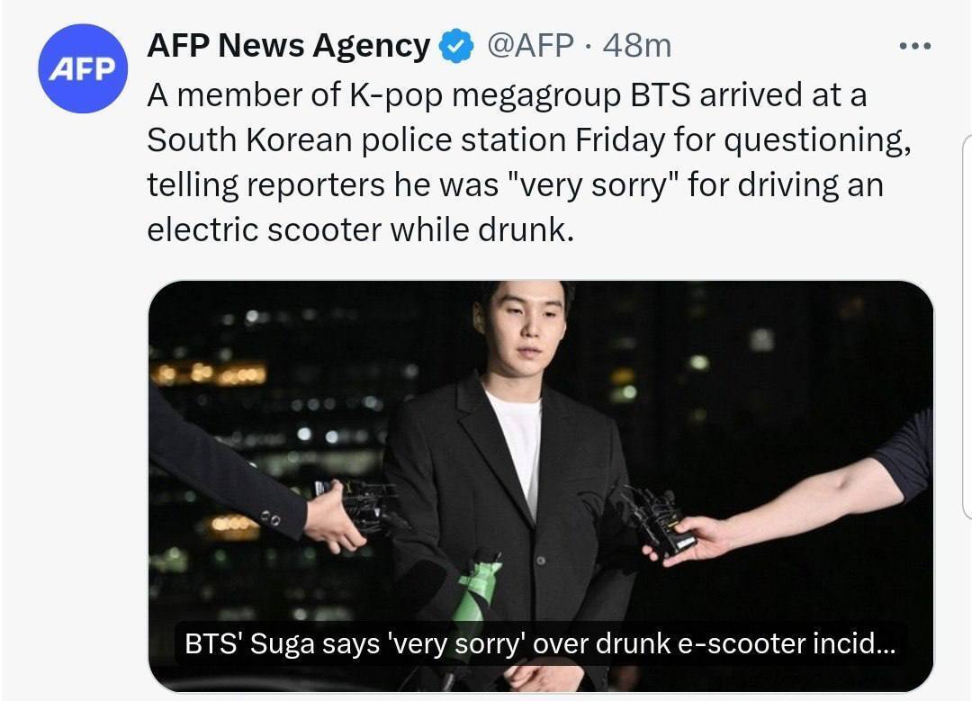 یکی از اعضای گروه پاپ BTS به دلیل رانندگی با اسکوتر برقی در حالت مستی عذرخواهی کرد.