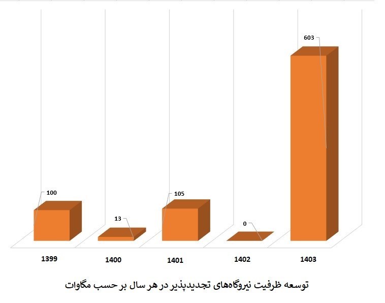 از ۲ مگاوات ، ظرفیت نیروگاه های تجدید پذیر در سال ۲ بیش از ۲ مگاوات در شش ماه اول سال (دولت سیزدهم) و ۲ مگاوات در شش ماه دوم (دولت چهاردهم) بود.