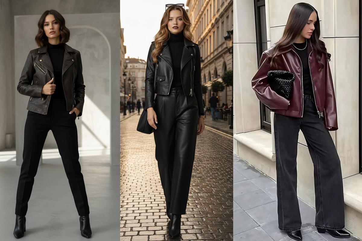 خانم های شیک پوش یک کت چرمی مشکی با یک تاپ کراپ مشکی و شلوار شش جیب سفید می پوشند تا تضاد رنگی واضح در استایل خود داشته باشند. این سبک پوشش مشکل یکنواختی در تیپ های شهری را حل می کند و ظاهری آوانگارد به شما می دهد. این ترکیب برای فعالیت های روزانه و گردش های دوستانه در سال ۲۰۲۶ بسیار محبوب است.