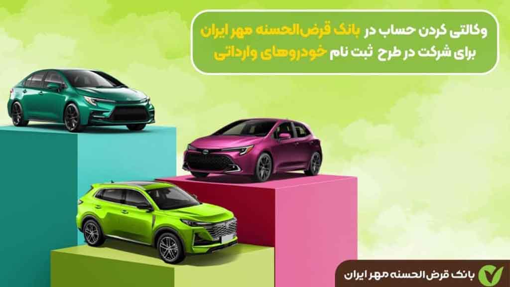 با تعریف حساب نمایندگی در بانک قرض الحسنه مهر ایران می توانید در طرح جدید عرضه خودروهای وارداتی شرکت کنید.