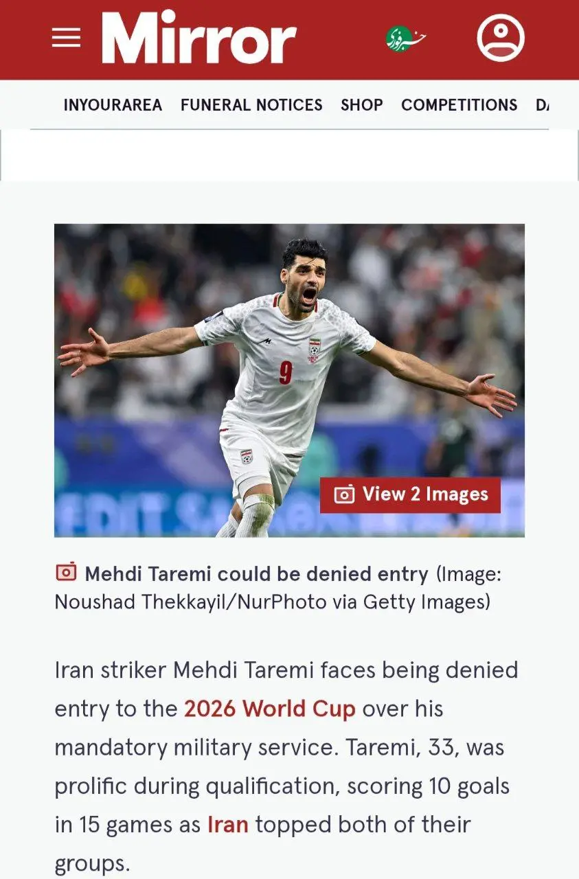 در همین رابطه روزنامه انگلیسی میرور در گزارشی مدعی شد یکی از ستاره های اصلی تیم ملی ایران ممکن است شانس حضور در جام جهانی ۲۰۲۶ را به دلیل مشکلات ویزا از دست بدهد. موضوعی که بازتاب گسترده ای در رسانه های بین المللی داشته است.