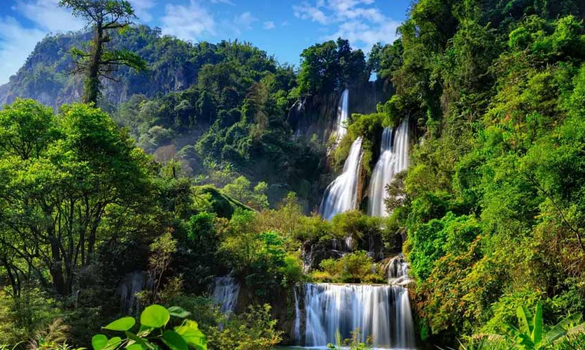 آبشار Ban Gioc-Detian که از رودخانه Quay Son در مرز چین و ویتنام سرچشمه می گیرد، چشم اندازی زیبا در میان جنگل های سرسبز و زیبا دارد.