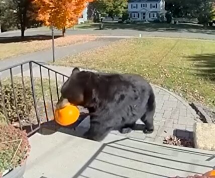 ببینید/دزدیدن کدو حلوایی توسط خرس سیاه از ایوان خانه!