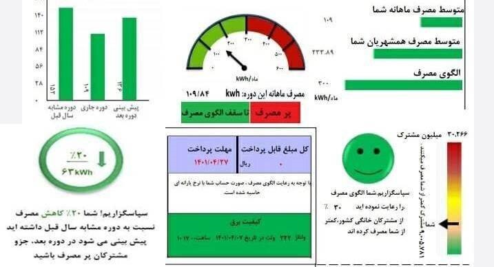 با توجه به این موضوع از مشترکین محترم تقاضا می شود نسبت به پرداخت بدهی بابت بهای برق مصرفی قبل از مهلت مقرر در پیامک قیمت برق اقدام نمایند تا شرکت توزیع نیروی برق گیلان بر اساس این موارد مجبور به قطع برق مشترکین بدهکار نباشد. به آیین نامه تعرفه ای وزارت نیرو.