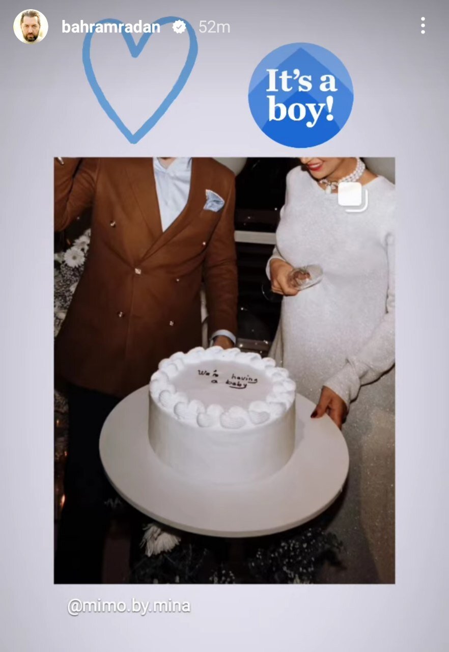بهرام رادان با انتشار مطلبی اعلام کرد که صاحب یک پسر می شود.