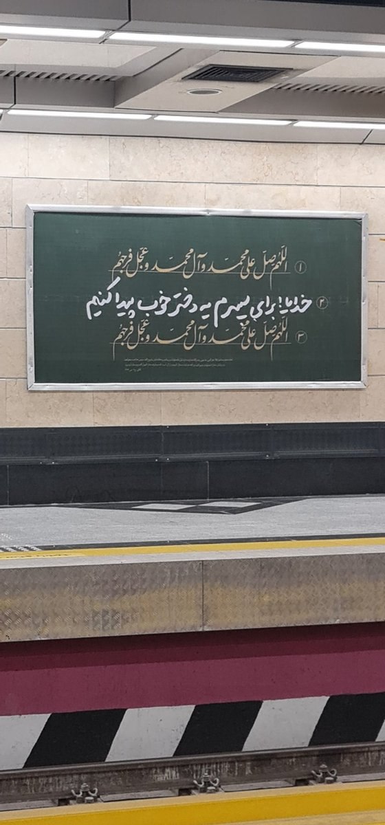 تصویر دعای خاص روی دیوار یکی از ایستگاه های مترو تهران بیشترین بازدید را در بین کاربران فضای مجازی دارد. این مقاله می گوید: “خدایا! بیا برای پسرم یک دختر خوب پیدا کنیم.” نکته جالب در مورد این تابلو این است که دقیقا در جایی نصب می شود که خانم ها برای سوار شدن به قطار توقف می کنند.