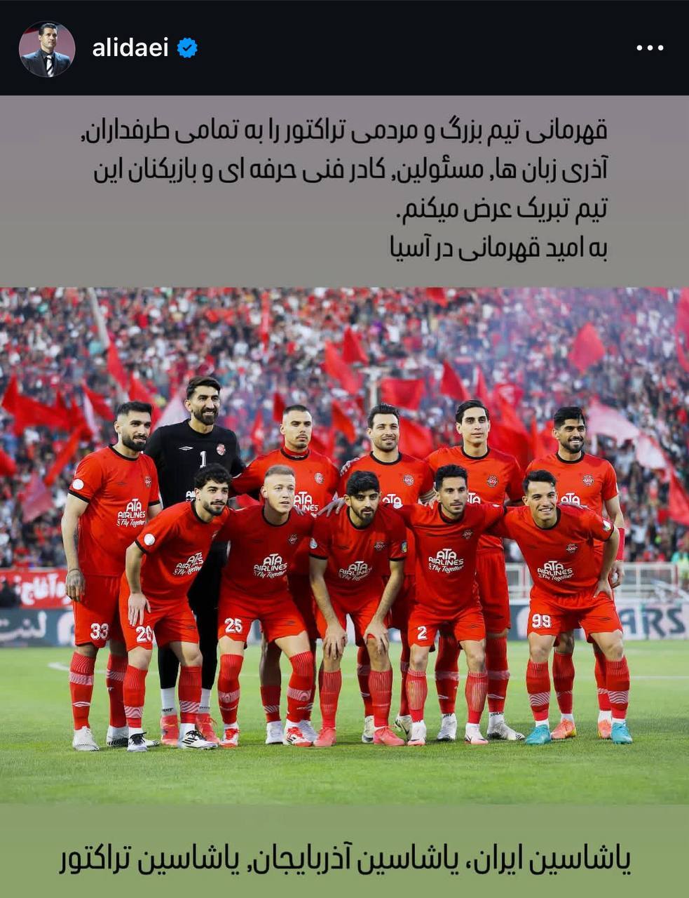 علی دائی تیم محبوب خود را در اینستاگرام در اینستاگرام تبریک گفت.