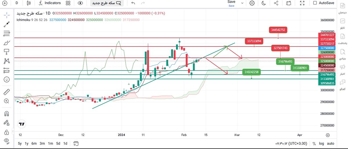 بر اساس اندیکاتور ایچیموکو، این تحلیلگر بازارهای مالی حمایت از سکه را ۳۱ میلیون و ۶۷۰ و ۳۱ میلیون و ۳۰۰ هزار تومان دید، در حالی که مقاومت های آن در ۳۲ میلیون و ۷۵۰ و ۳۳ میلیون و ۷۳۰ هزار تومان است.
