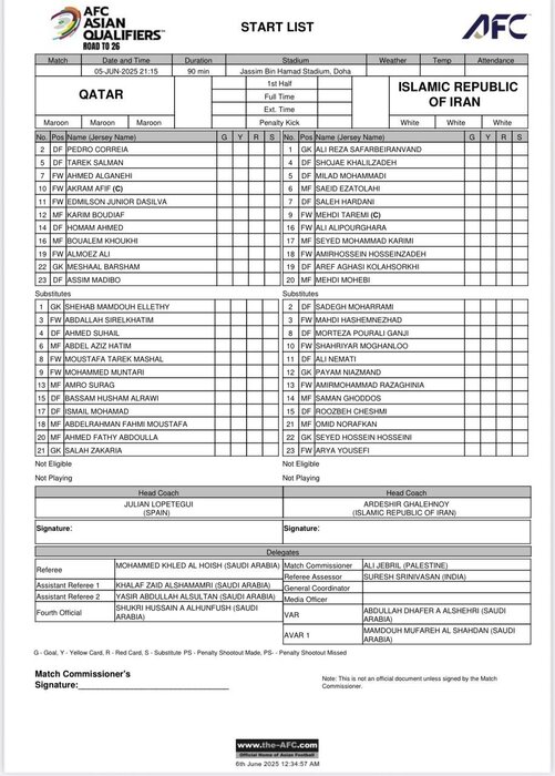به گفته امیر قلانی نووی ، تیم ملی امشب با Alireza Biranvand ، Shoja Khalilzadeh ، Milad Mohammadi ، Saeed Ezzatolhahi ، Seyeyed Mohammad Karimi ، Amir Hossein Hosseinzadeh ، Aref Aghasi ، Mehhhasi ، Mehhdi Mohhehehehhe Hadhehhehhasi Mohehehehhehhasi ، تارامی