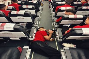 تصاویر یادگاری بازیکنان تراکتور با جام قهرمانی در هواپیما
