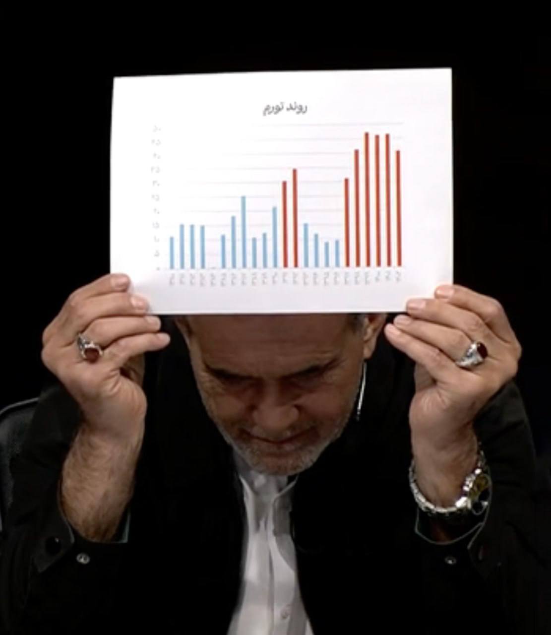 در این مناظره پزشکان تصویری از نرخ تورم در دولت رئیسی نشان دادند و گفتند: این تورم در دولت آقای رئیسی است.