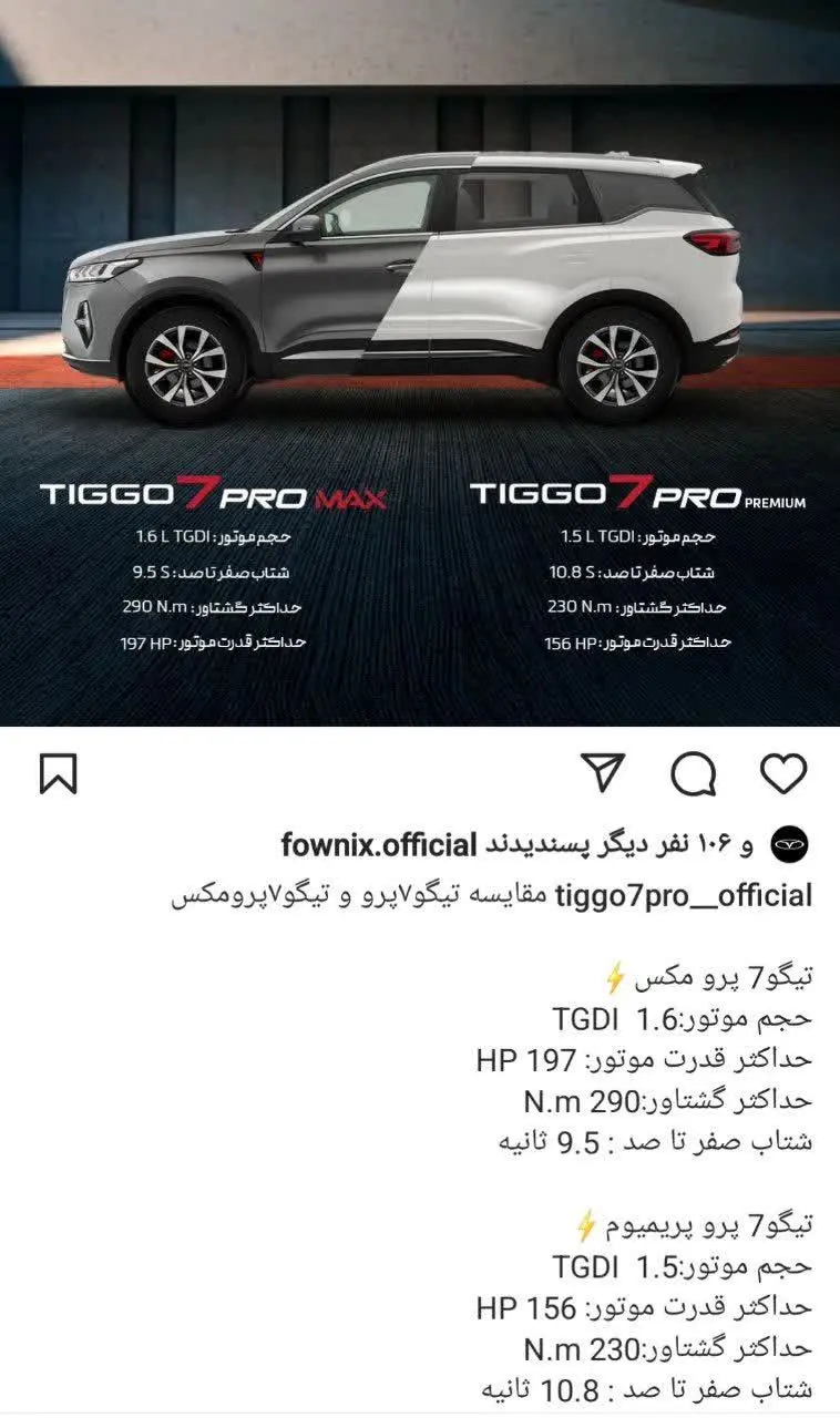 موتور و تجهیزات فنی تیگو ۷ پرو مکس