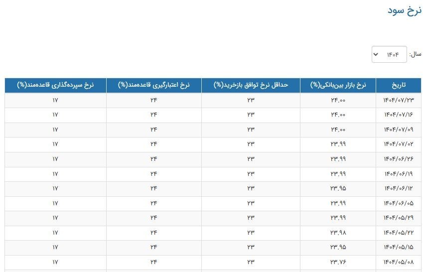 ثبات نرخ سود بینبانکی در سطح ۲۴ درصد