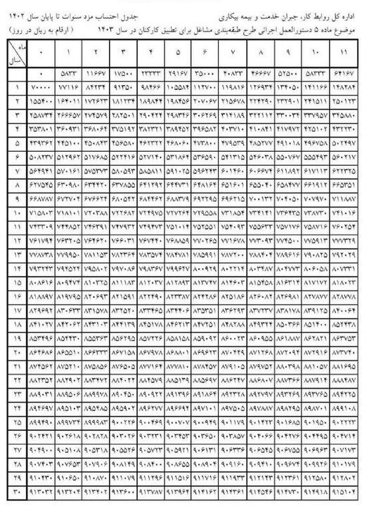جدول محاسبه حقوق سنوات تا پایان ۱۴۰۲ (برای اجرا در ۱۴۰۳) توسط وزارت کار منتشر شد.