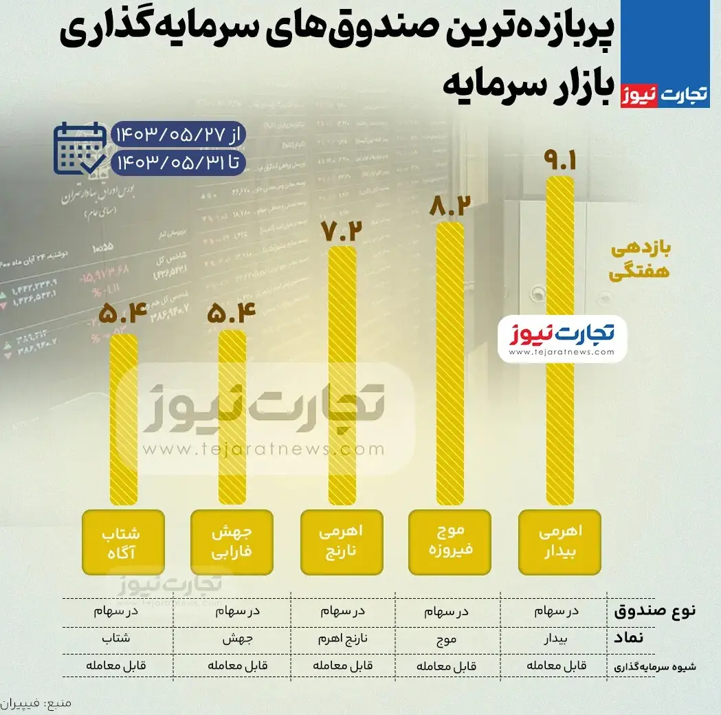 جزئیات بالاترین بازدهی صندوق های سرمایه گذاری بورس هفته پایانی مرداد ۱۴۰۳ + اینفوگرافی