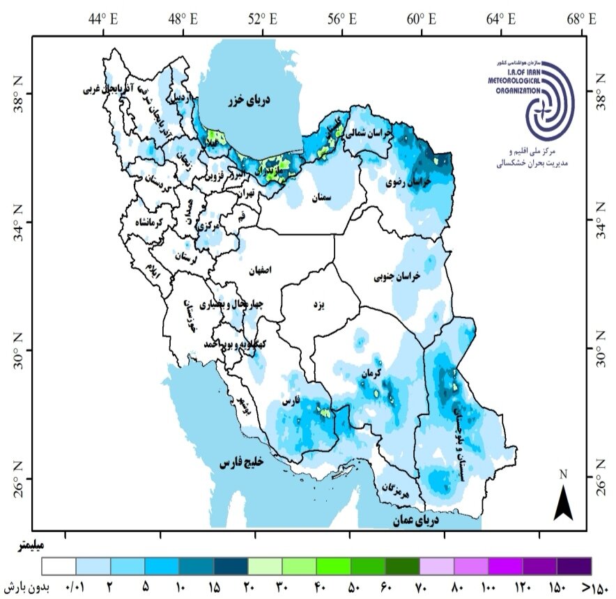 استان های خوراسان رازوی ، گلستان ، مازندران ، گیلان و سیستان و بلوچستان بیش از بارندگی طبیعی در بخش هایی از منطقه خود و سایر قسمت های کمتر از حد معمول داشتند.