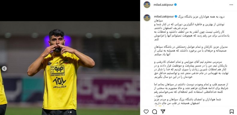 میلاد زکی پور مدافع چپ تیم فوتبال سپاهان اصفهان پس از ۲ فصل حضور در طلای پوشان تصمیم به جدایی گرفت.