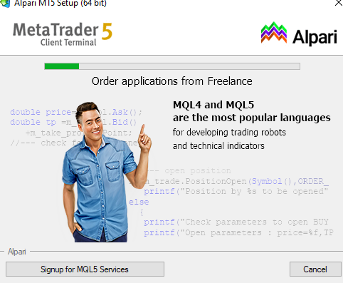 درپوش: نصب Alpari Metatrader 5 کمی طول می کشد و باید اجازه دهید مراحل نصب کامل شود.