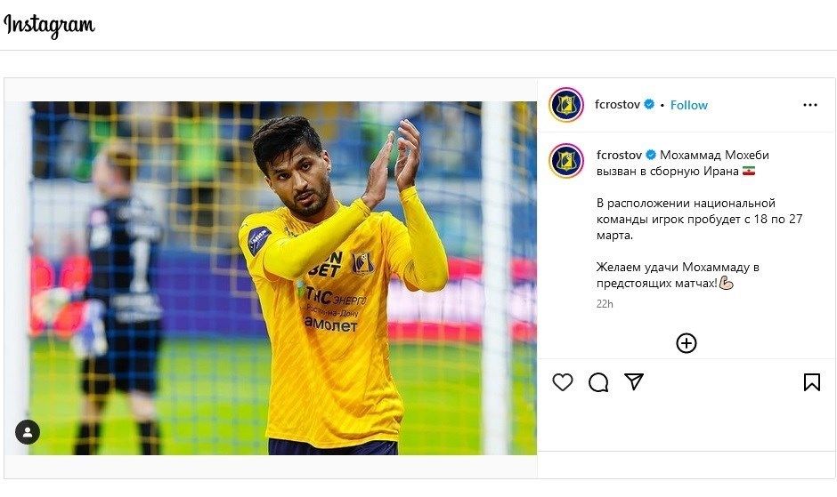 در پست منتشر شده در صفحه اختصاصی باشگاه روستوف آمده است: «محمد محبی به اردوی تیم ملی ایران دعوت شد. این بازیکن بین ۱۸ تا ۲۷ مارس (۲۸) اسفند تا ۸ فروردین) در خدمت تیم ملی ایران خواهد بود. برای محمد در بازی های آینده آرزوی موفقیت می کنیم.”