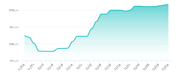 نمودار زیر تغییرات روزانه قیمت حواله دلاری به ریال را در یک ماه گذشته نشان می دهد.